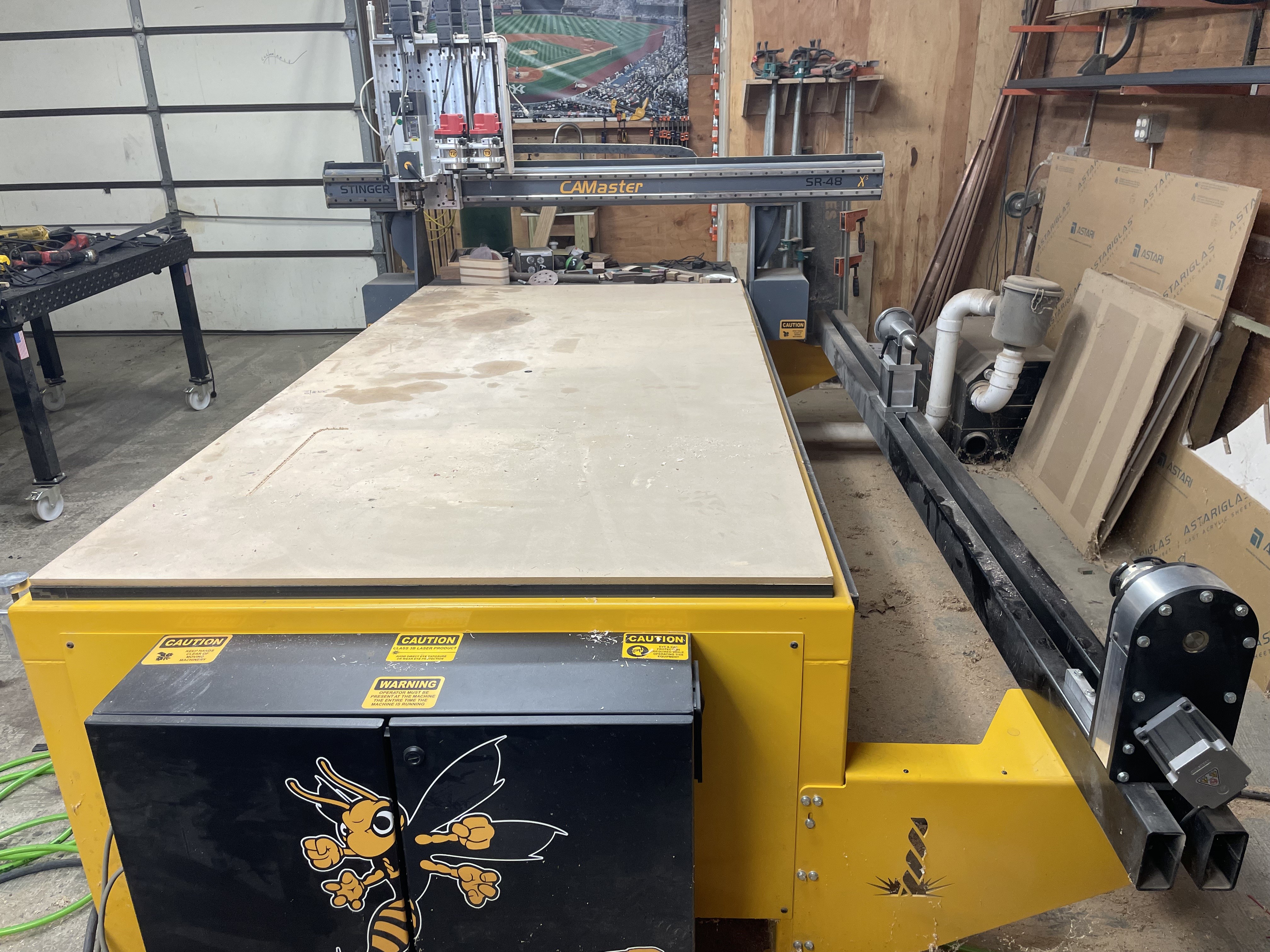 Three heads for efficient workflow, also a cnc lathe on the side for round projects.